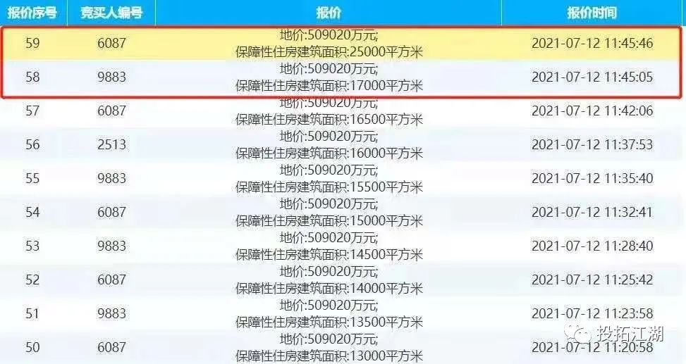 土地拍賣(mài)進(jìn)行的前一個(gè)小時(shí),大家都在按規(guī)則競(jìng)價(jià),一直競(jìng)價(jià)到509020萬(wàn)元。然后大家又花了一個(gè)小時(shí)競(jìng)無(wú)償移交保障性住房,可能是萬(wàn)科覺(jué)得這樣一直搞沒(méi)意思,想早點(diǎn)結(jié)束。在上午11時(shí)45分的時(shí)候,萬(wàn)科突然加價(jià),跳加了8000平米的無(wú)償移交,直接把無(wú)償移交保障性住房的面積,干到了25000平米,然后土拍結(jié)束了。