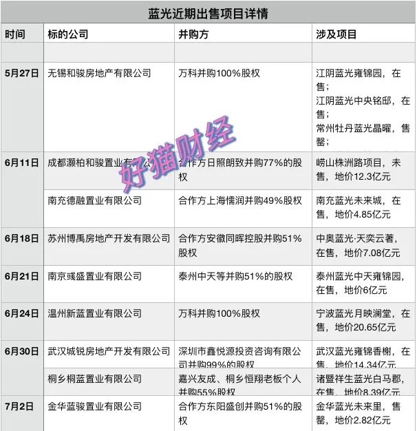 實(shí)際上,從5月底至今不到兩個(gè)月時(shí)間里,藍(lán)光已經(jīng)對(duì)外出售了36個(gè)項(xiàng)目資產(chǎn),大部分為長(zhǎng)三角優(yōu)質(zhì)項(xiàng)目。