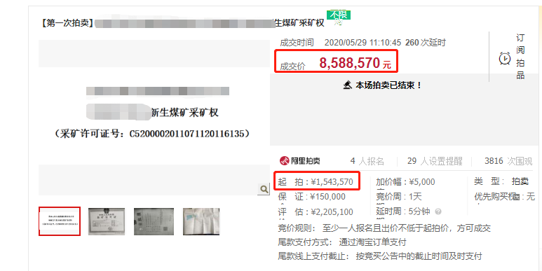 在我們檢索過(guò)程中發(fā)現(xiàn),被執(zhí)行人的探礦權(quán)、采礦權(quán)也有較高的價(jià)值,從普通的沙石礦到昂貴的煤礦、有色金屬礦等,相應(yīng)的探礦權(quán)、采礦權(quán)均有成功處置的記錄。