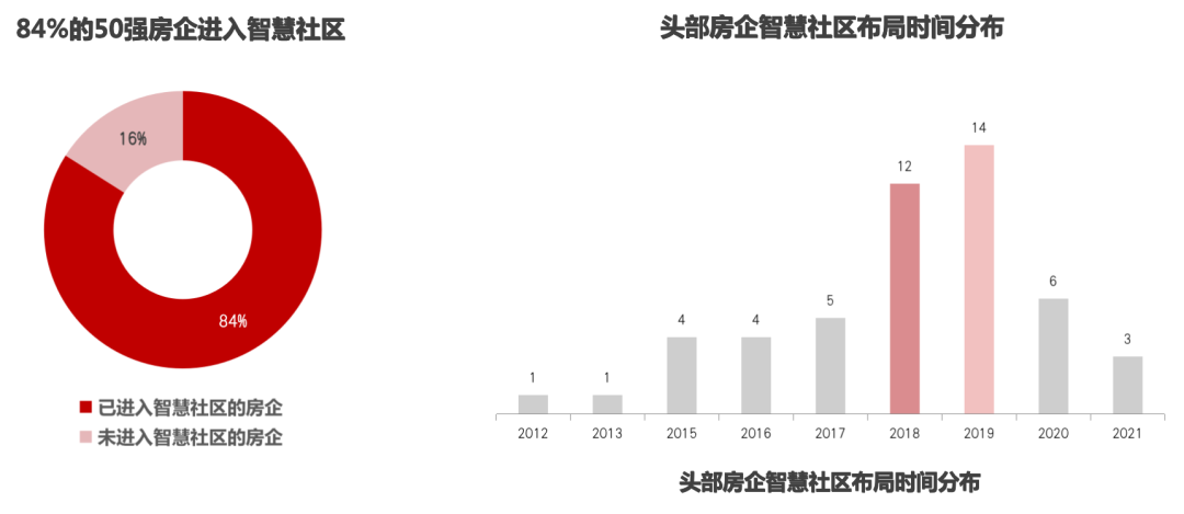 圖:頭部房企布局智慧社區情況及布局時間分布