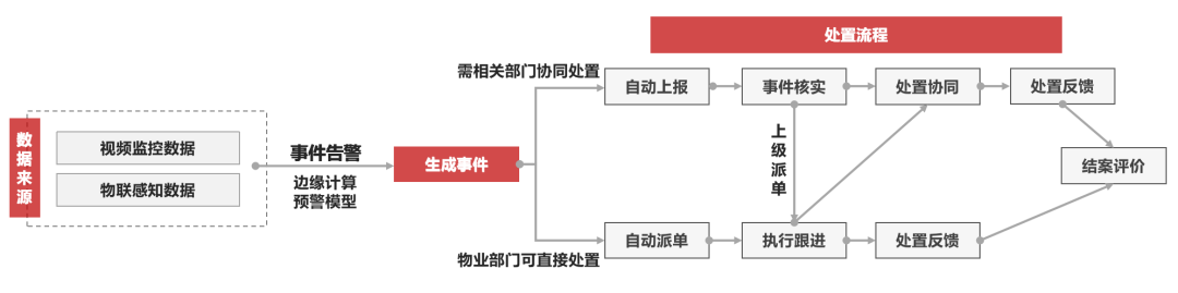 物業企業可將住宅小區綜合管理服務事件納入街鎮城運網格化平臺,實現閉環管理,推動城市數字化管理服務像社區延伸,體現物業企業在社區服務管理中的積極作用。比如高空擲物、消防占道、電瓶車入梯、違法群租、可疑人員軌跡追蹤、設備能耗管理等場景監測,物業應利用自有感知設備與兩網實現應用融合,打造事件處理閉環,通過智慧安防與大數據系統,實時監測是否有相關隱患事件。物業企業也可針對設置相應事件常態化處理機制與應急處理機制,及時聯動城管等部門上報相關情況。