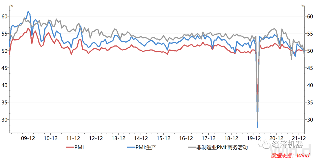 今日,3月份PMI數據出爐,PMI整體錄得49.5%,弱于預期的50%,較上月的50.2%下滑0.7個百分點,5個月以來首次跌入收縮區間。非制造業商務活動指數為48.4%,較上月回落3.2個百分點。生產、訂單、出口訂單等分項大部分較上月出現回落,且低于50%榮枯線。