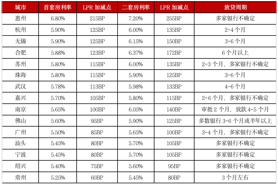 表:6月底至7月初多個熱點城市上調房貸利率并延長放貸周期