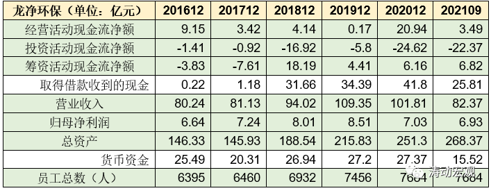 截至2021年9月,龍凈環保股份總資產達到268.37億元、實現營收82.37億元、歸母凈利潤6.93億元,擁有員工數量7684人。