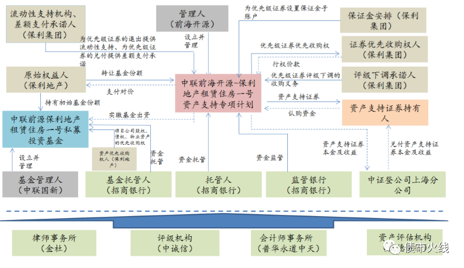 類REITs交易結(jié)構(gòu)里有引入私募基金的產(chǎn)品結(jié)構(gòu),此類最為常見(jiàn),比如: