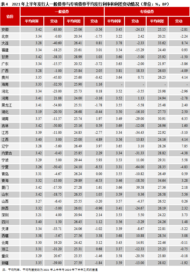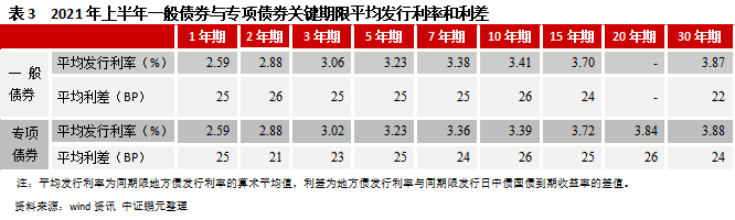 2、2021年上半年地方債發行利率特點: