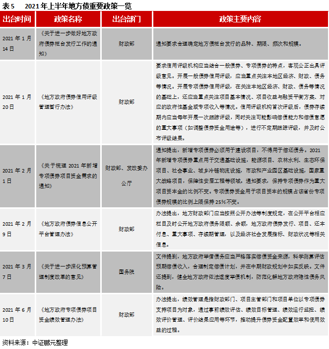 2021年上半年地方政府債券政策梳理