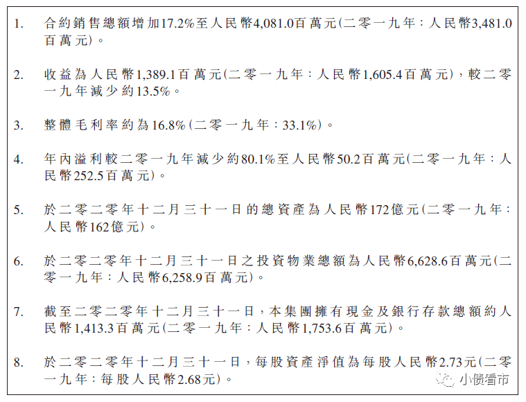 在毛利方面,2020年金輪天地控股的整體毛利率為16.8%,較2019年的33.1%大幅下滑,其中房地產開發業務毛利率為3.7%,主要由于湖南株洲交付了一個零利潤項目。
