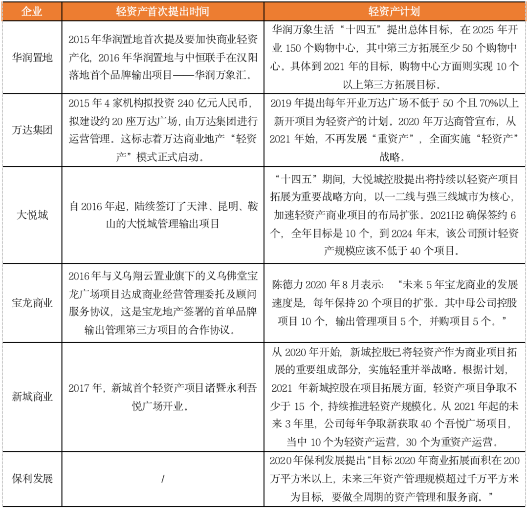 輕資產已經成為商業地產運營的重要趨勢,當前國內大部分頭部商業運營房企基本涉足輕資產品牌管理輸出。