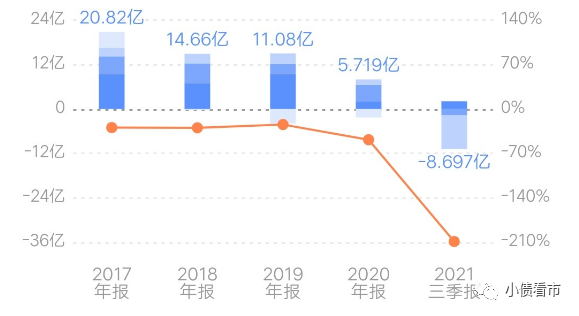 2021年前三季度,中天金融實現(xiàn)營收223.23億元,實現(xiàn)歸母凈利潤-8.7億元,同比減少208.67%,實現(xiàn)扣非歸母凈利潤-10.03億元。