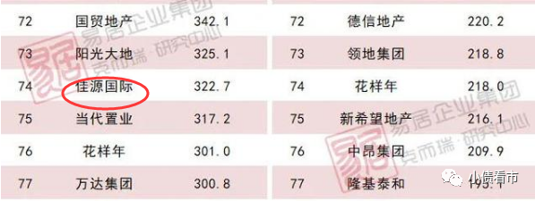 據(jù)克而瑞數(shù)據(jù),2021年佳源國際以322.7億操盤金額位居房企第74位,中天城投排第129名。