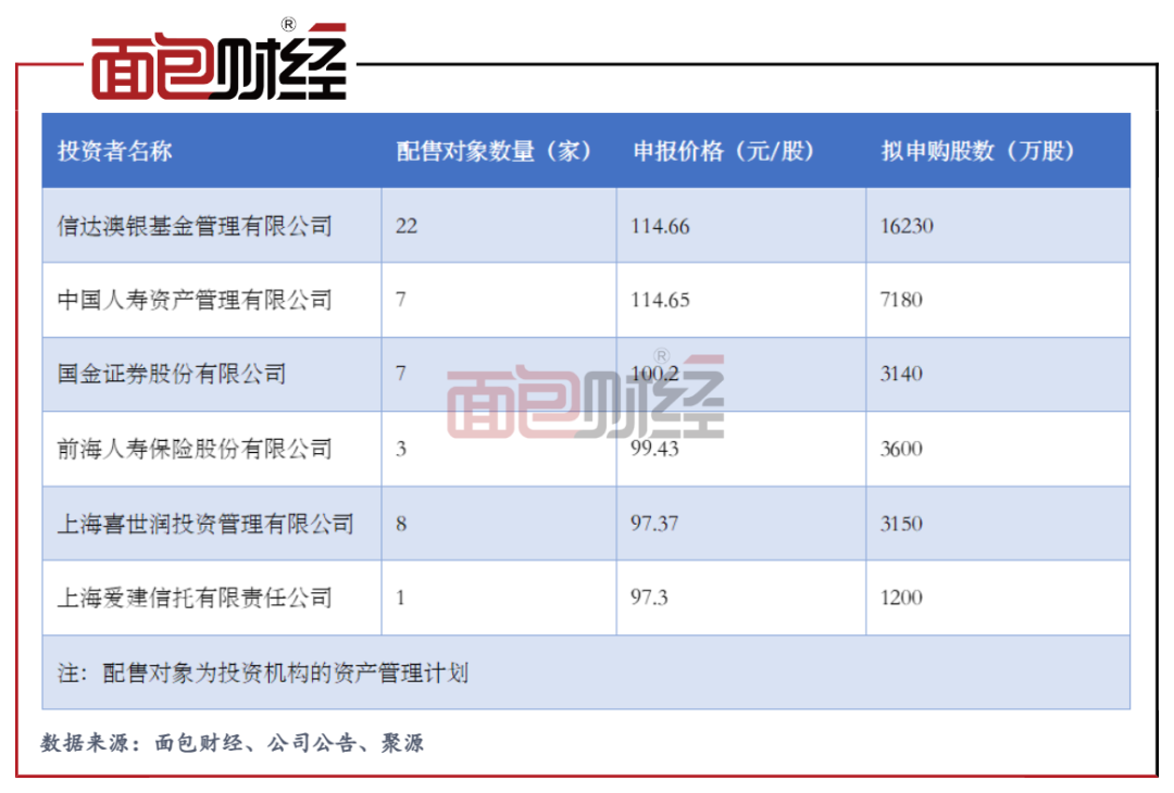 根據(jù)詢價(jià)明細(xì),將所有投資者報(bào)價(jià)和擬申購(gòu)股數(shù)加權(quán)平均得出的申報(bào)價(jià)格均值為89.23元/股,而所有投資者報(bào)價(jià)的中位值為90.79元/股。易方達(dá)和主承銷商中信證券分別報(bào)出的97.1元/股和94元/股明顯較高。