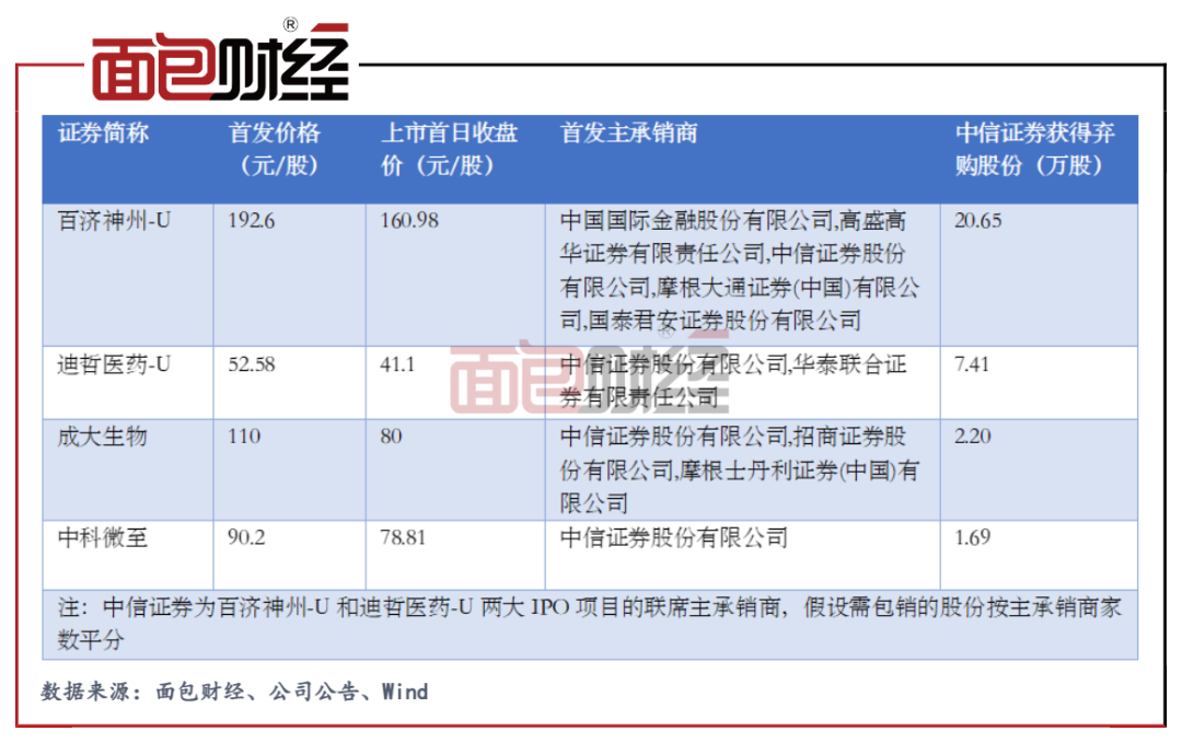 中信證券頻為破發(fā)新股的主承銷商 “接盤”棄購(gòu)股票產(chǎn)生較大損失