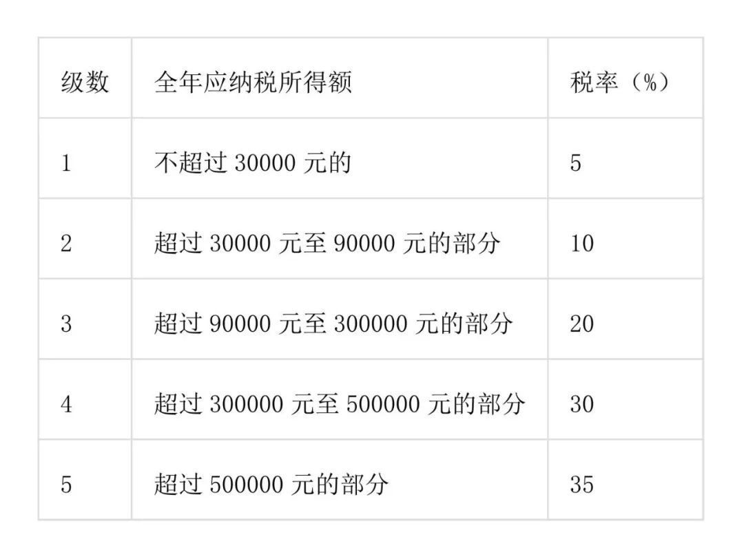 (二)經(jīng)營所得,適用百分之五至百分之三十五的超額累進稅率;