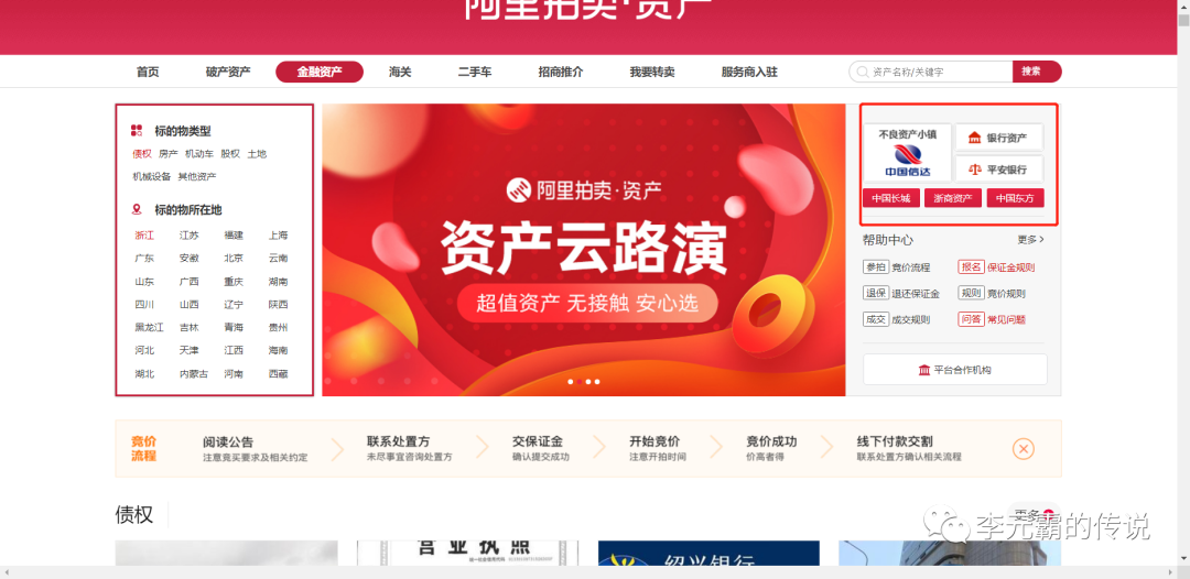 之前提到,法拍的火熱自然會(huì)引發(fā)上家債權(quán)市場投資人的注意,隱晦玩了20年的不良資產(chǎn)市場被這個(gè)所謂的門外漢饞的躍躍欲試,中國的三架“馬”車平安系開赴現(xiàn)場,大力用自己的生態(tài)圈去成就了另一個(gè)馬,債權(quán)市場的公開拍賣的火熱,平安功不可沒。接下來就是四大之一的信達(dá),因?yàn)榕c杭州小平臺的一年簽約到期,不見效果,也轉(zhuǎn)投阿里,兩大貨源的推波助瀾,已經(jīng)給市場一記重?fù)簟?/p>