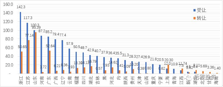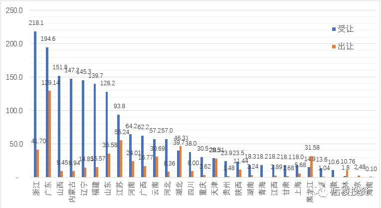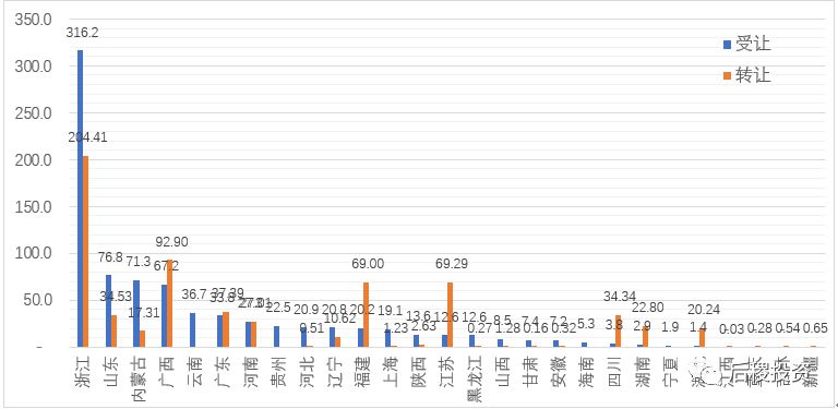 信達(dá)無論是受讓端還是轉(zhuǎn)讓端,浙江地區(qū)都遙遙領(lǐng)先去其他省份,其中受讓金額占全國總金額的39%,轉(zhuǎn)讓金額占31.56%;除浙江意外,信達(dá)在山東、內(nèi)蒙古、廣西一級市場較為活躍,二級市場中,在廣西、江蘇、福建三省市場份額也排在前列,合計占比35.69%。