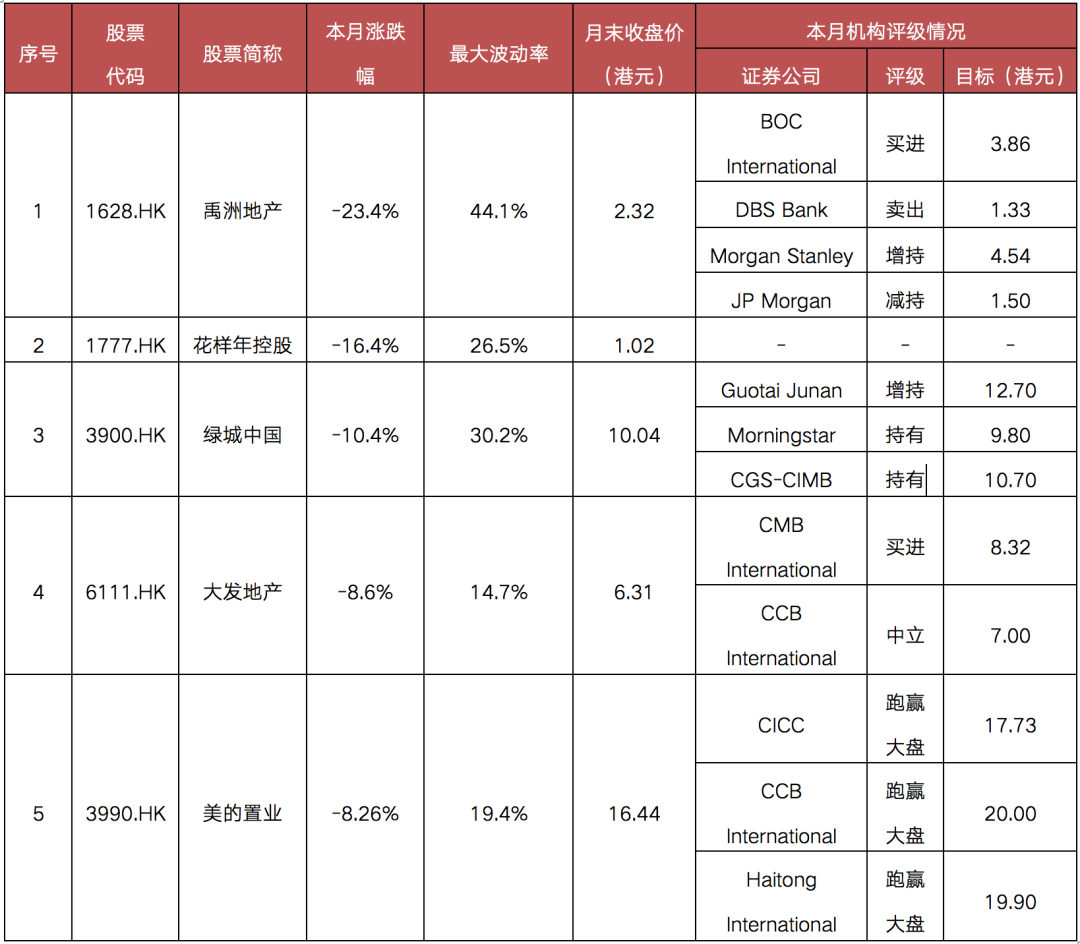 備注:恒生中國內地地產指數的推出主要是為了反映前10只市值最大、流通性最高,在香港上市但主要營業收入來自中國內地的房地產股票表現。當前成分股共10只,分別為:中國金茂、中國海外發展、世茂集團、龍湖集團、華潤置地、龍光集團、碧桂園、中國恒大、碧桂園服務、融創中國