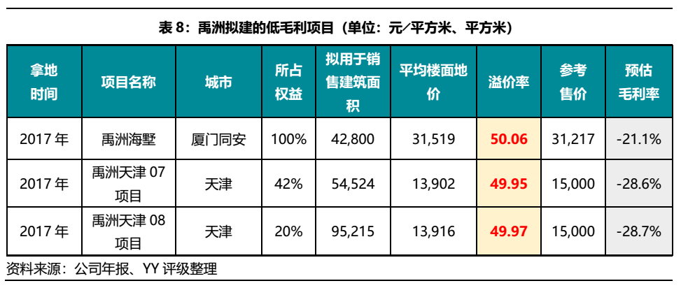 (1)若干項目即合肥的禹洲平湖秋月、蘇州的禹洲嘉譽山、亳州的禹洲名邦狀元府、上海的禹洲雍賢府所在當地的限價政策的影響而導致毛利率微薄。