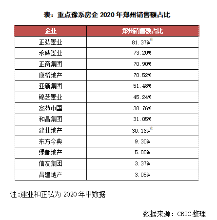 2、豫系房企本省銷售占比超過7成,主要集中在大鄭州