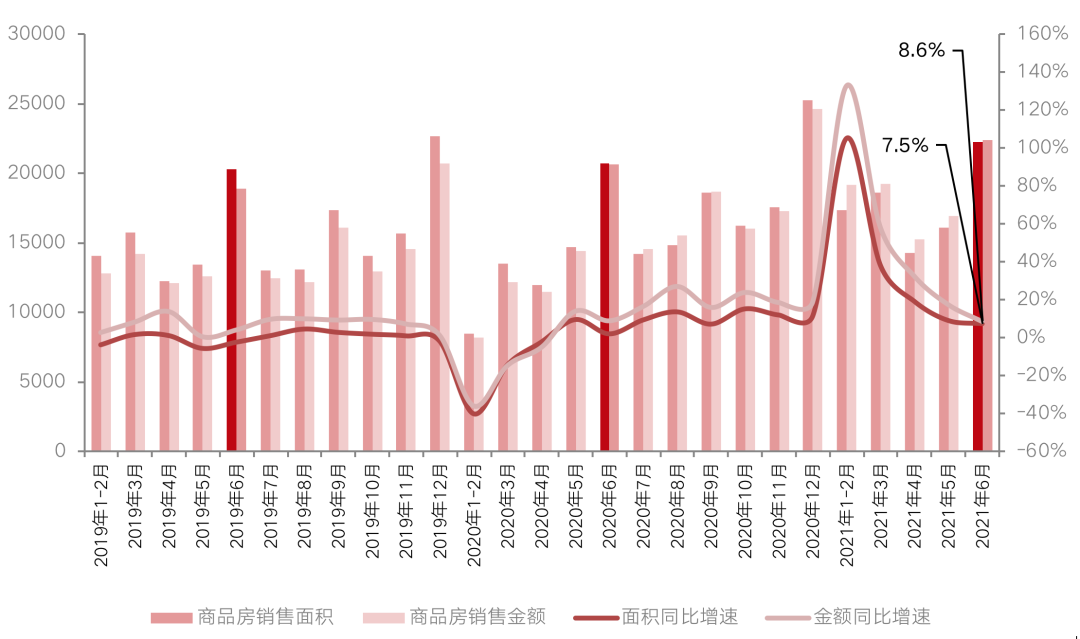 國家統(tǒng)計局?jǐn)?shù)據(jù)顯示,1-6月,商品房銷售面積88635萬平方米,同比增長27.7%;比2019年1-6月增長17.0%,兩年平均增長8.1%。其中,住宅銷售面積增長29.4%,辦公樓銷售面積增長10.0%,商業(yè)營業(yè)用房銷售面積增長5.7%。商品房銷售額92931億元,增長38.9%;比2019年1-6月增長31.4%,兩年平均增長14.7%。其中,住宅銷售額增長41.9%,辦公樓銷售額增長10.7%,商業(yè)營業(yè)用房銷售額增長8.8%。