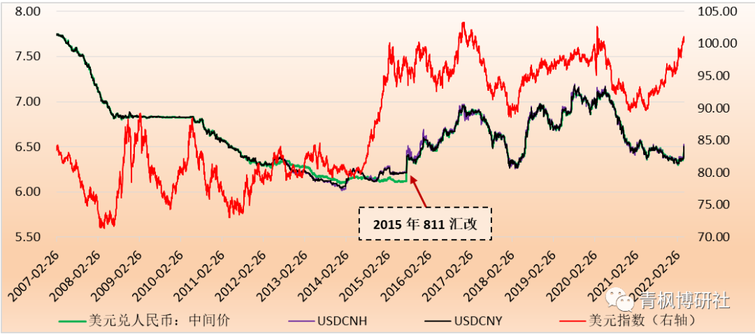 二、近期人民幣走勢很容易讓人聯想到2015年的811匯改