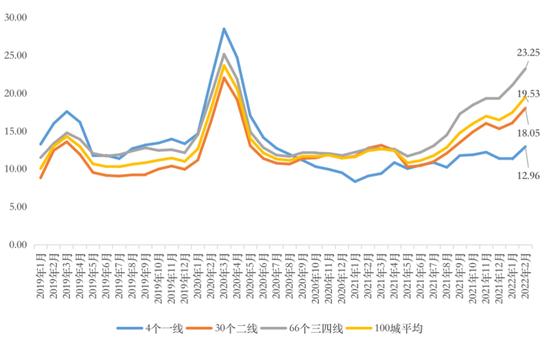 注:2022年2月商品住宅庫存去化周期=2022年2月末商品住宅庫存量/近3月商品住宅成交面積均值