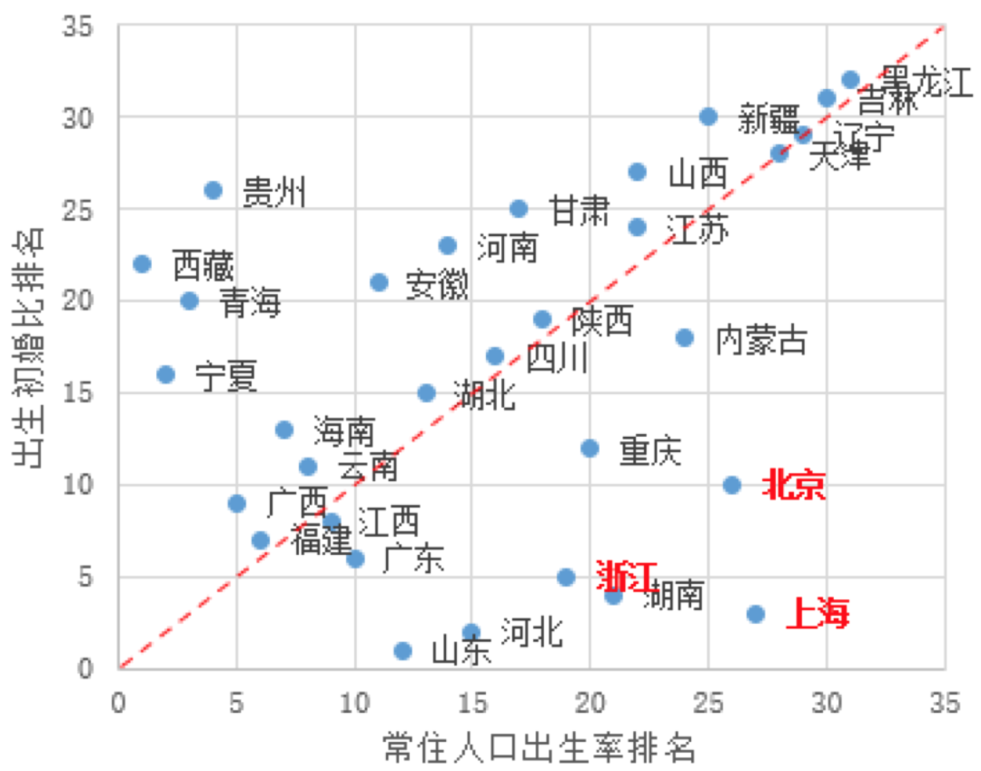 與出生初婚比排名對(duì)比