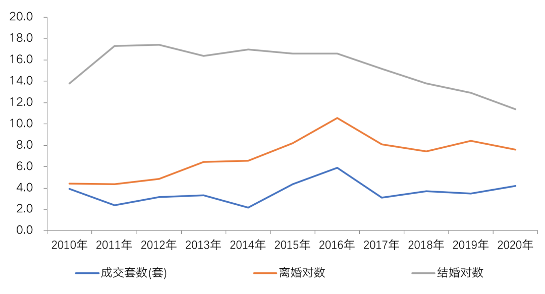 婚育是推動(dòng)住房需求入市的重要?jiǎng)恿Γ鞘芑橛^念、社會(huì)年齡結(jié)構(gòu)結(jié)構(gòu)變化等因素影響,近年來(lái)新婚人數(shù)快速下滑,與之相關(guān)的住房需求也正在面臨著巨大變化。
