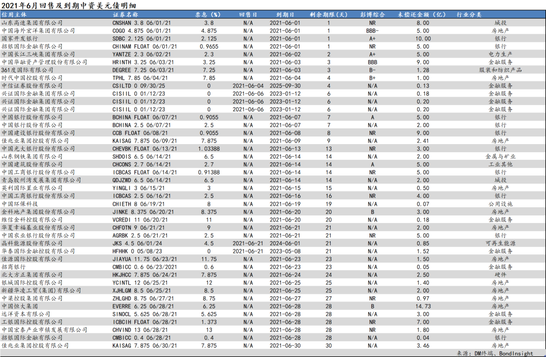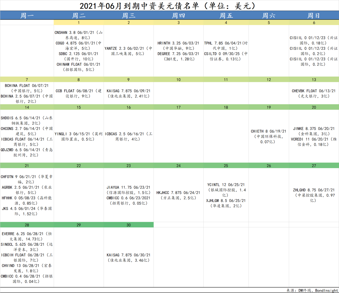 步入六月,首先得關注臨近到期債項: