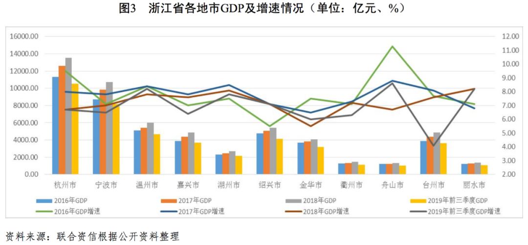 浙江省地處中國東南沿海,經濟總量長期處于全國領先水平,人均GDP及城鎮化率處于全國較高水平;近三年浙江省經濟持續較高速增長,產業結構更趨優化,2018年固定資產投資增速有所下滑,但整體經濟趨勢良好。全省各地市經濟發展較不均衡,分化較為明顯,省會杭州市及計劃單列市寧波市的經濟實力及財政實力明顯優于其他地區。