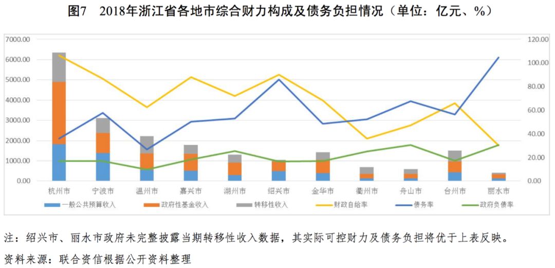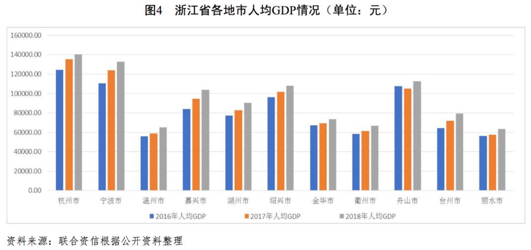 浙江省各地市經濟發展分化較為明顯,其中杭州市、寧波市經濟發展水平和財政實力持續多年領先;2018年浙江省各地市一般公共預算收入增速均較快且收入結構很好,但收入實現水平差異仍較大;各地市的政府綜合財力較高,整體債務水平處于可控范圍,其中紹興市、麗水市和舟山市的債務率較高。