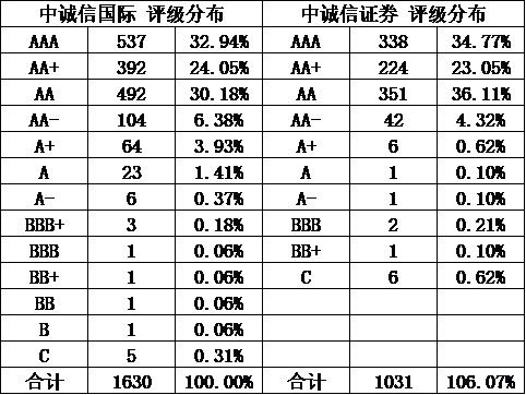 中誠信作為我國最早一批評級機構,發展較好,客戶普遍優質,因此高評級占比高可以理解。