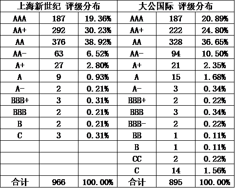 今天對各家評級機構的評級結果進行統計分析: