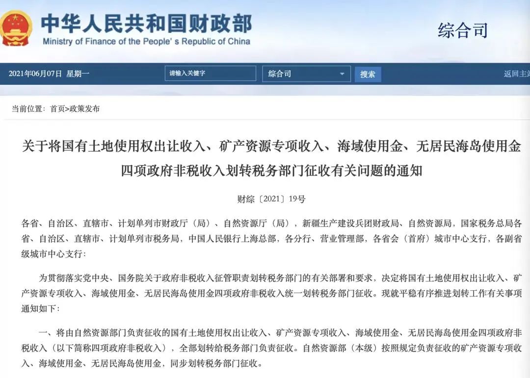 國有土地出讓收入,自2022年起,全面劃轉稅務部門征收。
