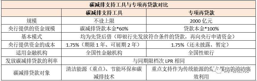 央行披露碳減排支持工具(參見碳減排支持工具全解)和2000億元綠色專項再貸款已經落地(參見如何理解新推出的2000億元專項再貸款?)(目前兩個工具的利率均為1.75%)。其中,央行已向有關金融機構發放第一批碳減排支持工具資金855億元,支持金融機構已發放符合要求的碳減排貸款1425億元,共2817企業,帶動減少排碳約2876萬噸。