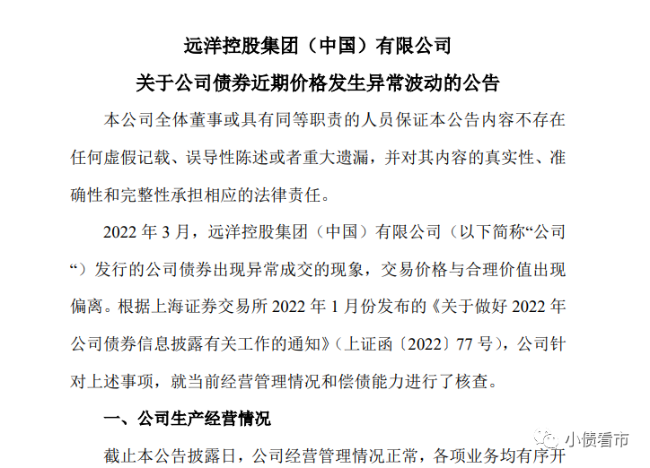 很快,遠洋控股公告稱,公司經(jīng)營管理情況正常,各項業(yè)務均有序開展,無重大不利變化。