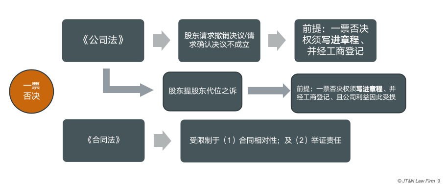 一票否決權的效力現狀,或曰其與中國目前法律體系的沖突我們整理如下圖:
