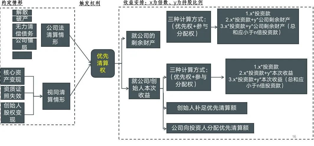 我們以該條款常用中文版本為基礎,將所有優先清算權條款結構簡化如下:
