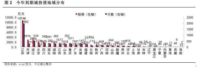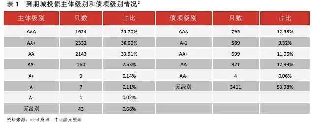 1、今年城投債到期只數6322只,規模39714.52億元,分別比2020年上升49.00%和62.58%,處于近年來高點,城投債到期償還壓力較大。地域上到期城投債以江蘇居首,其次為天津,浙江居第三位。從行政區域來看,城投債到期規模呈現逐級遞增態勢,信用風險總體可控。到期城投債中低評級主體較少,高評級占據了主體地位。去年以來主體級別發生過調整的發行人共97家,有92家出現上調,有5家出現下調,有119只債券債項級別發生過調整,有819只為擔保債券,占比12.95%。