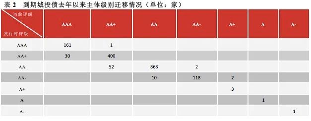 從級別調整來看,去年以來主體級別發生過調整的發行人共97家,其中,有92家出現上調,由AA+級上調到AAA級的有30家,由AA級上調到AA+級的有52家,由AA-級上調到AA級的有10家;有5家出現下調,由AAA級下調到AA+級有1家,為海南省發展控股有限公司;由AA級下調到AA-級有2家,分別為文山城市建設投資(集團)有限公司、貴州水城經濟開發區高科開發投資有限公司;由AA-級下調到A+級有2只,分別為金昌市建設投資開發(集團)有限責任公司、四川金財金鑫投資有限公司。另外,去年以來債項級別發生過調整的債券共119只,其中,有117只發生上調,由AA+級上調到AAA級的債券有48只,由AA級上調到AA+級的債券有69只,有2只發生下調,由AA級下調到AA-級的債券有2只,分別為16文山債、18水城高科債。