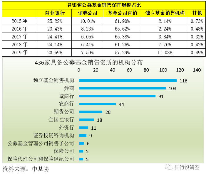 根據中基協公布的數據,目前共有436家機構具備公募基金銷售資質。不過在上述436家機構中,目前也只有銀行、獨立基金銷售機構和券商闖出了一片天地。當然基金的代銷渠道正變得越來越重要,特別是直銷的比例在逐年下降,而獨立基金銷售機構的重要性則提升明顯。