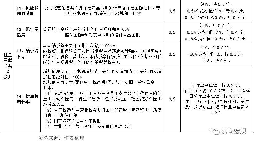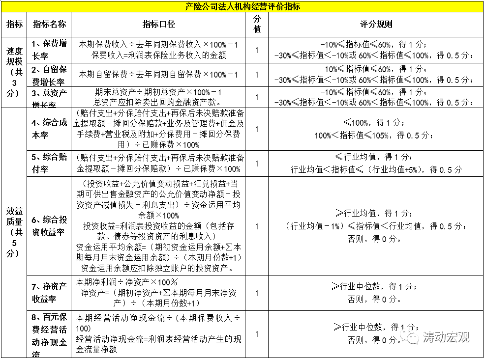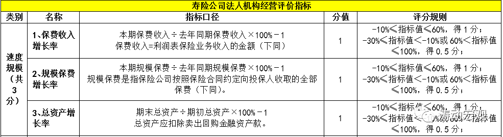 2、評價指標由定量指標組成,不包括定性指標,主要基于速度規模、效益質量和社會貢獻三大類指標完成,其中壽險公司14個評價指標(分支機構13個)、產險公司12個評價指標(分支機構10個)。