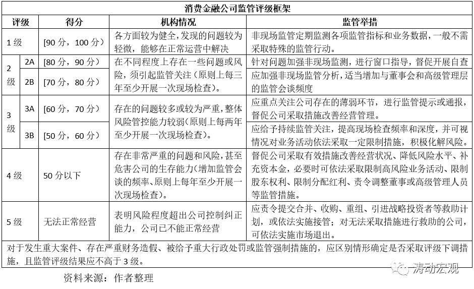 (四)消費金融公司:依據《消費金融公司監管評級辦法(試行)》