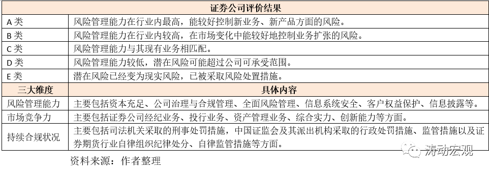 2、證監會主要根據2020年7月10日發布的《證券公司分類監管規定》(證監會公告〔2020〕42號)進行評價。這一文件最早于2009年5月26日發布,并分別于2010年5月14日、2017年7月6日以及2020年7月10日三次修訂。證券公司的分類評價標準以風險管理能力為基礎,主要依據《證券公司風險管理能力評價指標與標準》??梢哉f證券公司的分類評價體系是證監會體系下各機構評價的主要基準,諸如期貨公司等其它金融機構的評價體系亦主要參考證券公司。