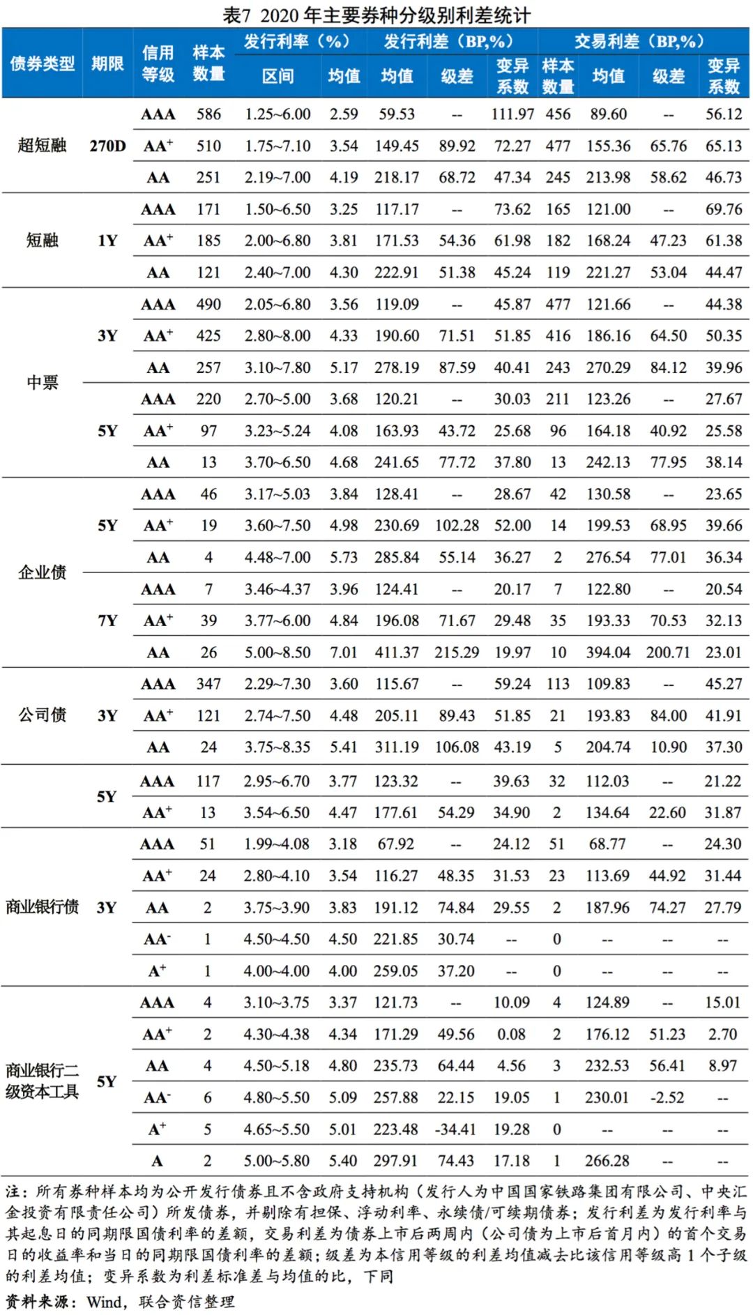 2020年,信用等級(超短融、短融為主體信用等級,其他券種為債項信用等級)對債券發行利率、利差的影響主要體現在以下方面:
