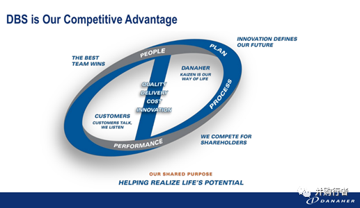 丹納赫前任CEO卡爾普(現通用電氣CEO)說,丹納赫的成功需要歸功于DBS系統,DBS系統的是建立在日本豐田汽車“精益生產”的管理哲學之上,在此基礎之上,DBS逐漸發展成一個更為復雜的流程和體系,不僅包括精益生產,同時將精益的思想融入到戰略規劃、技術研發、員工培訓、客戶服務,一言以蔽之,DBS滲透到公司的每一個環節,成為丹納赫公司的文化和經營哲學,成為每一個人都必須遵循的理念,在丹納赫網站寫著:DBS is who we are and how we do what we do. 卡爾普說,DBS雖然不在丹納赫的資產負債表上體現,但卻是丹納赫最寶貴的資產。卡爾普繼續闡釋:“DBS系統有兩大獨特之處,首先它定義了我們的企業文化及我們企業的性質,也就是定義了我們所作所為和行為方式(我們的日常商業模式),我們成功的關鍵因素之一,便是我們擁有一個同時涵蓋業務軟環境及硬環境的系統性模式,在該模式中軟、硬環境相得益彰。其次,DBS系統自上而下貫穿我們的組織,我們的管理團隊隨著這一系統共同成長,它現在已深深扎根于我們的核心價值觀中。這一系統源自于我們的制造部門,但是現在已經對我們的各個職能部門均產生影響,它是我們完整的長遠經營模式的一部分。”丹納赫的成功不在于在某一具體的時間運用DBS的某一具體的工具,而在于長期、一貫、一致將DBS系統融入到企業的文化當中。