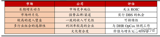 DBS與并購戰略:丹納赫制定并購戰略的過程實質上是一個 DBS過程,是一個遞進式的過程,包括市場、公司、評估三大模塊。在并購完成后,丹納赫利用 DBS 進行整合,完成從優秀到卓越的提升。在選擇市場時,丹納赫偏愛市場碎片化、集中度比較低,競爭激烈程度不大,而且有未滿足客戶需求的市場機會,同時,競爭對手的發展也比較遲緩的領域,在篩選市場中的擬并購標的時,通常傾向于選擇企業管理上存在改善空間或者發展遇到瓶頸,未來可以其通過 DBS 系統加以改善,以及借助丹納赫平臺的渠道和資金實力,使得收購的企業獲得更大的發展空間的企業。同時,被并購企業的管理層應有豐富的運營經驗和企業家精神,收購后丹納赫會盡可能保留原來的管理層和團隊,只在財務、管理、技術系統等層面上進行融合。此外,選擇企業的時候,丹納赫還會考慮和現有平臺內主要公司業務互補,有協同效應,以及一定的行業周期互補。
