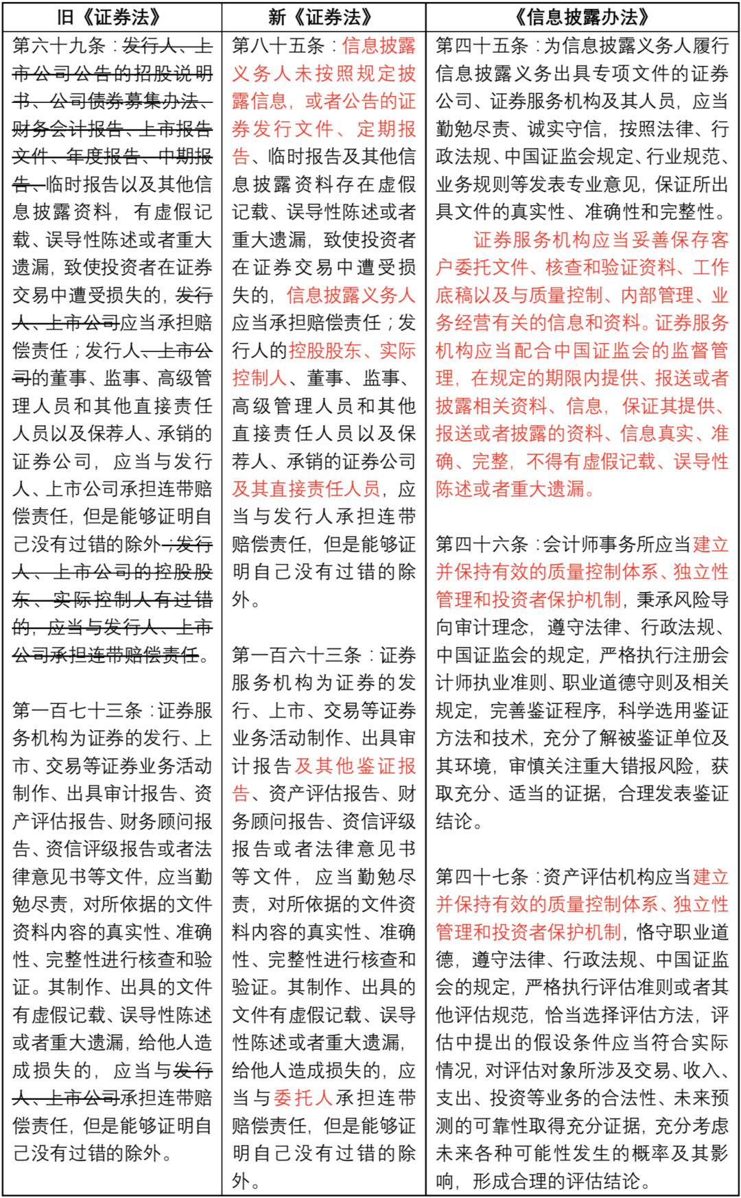 鑒于證券服務機構(gòu)作為證券市場的“看門人”,其對保障信息披露真實準確完整等起著至關(guān)重要作用。新《證券法》也進一步強加了證券服務機構(gòu)的“保障”作用,如第七十九條新增了公司年度財務會計報告應當經(jīng)會計師事務所審計的強制性要求。《信息披露辦法》也進一步強化了證券服務機構(gòu)的“看門人”責任,明確證券服務機構(gòu)等應當依法發(fā)表專業(yè)意見、保存工作底稿、配合證監(jiān)會調(diào)查、建立質(zhì)量控制體系和投資者保護機制等。