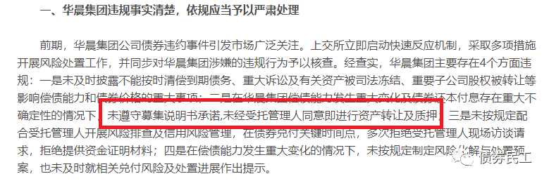 在上海證證券交易所公布的華晨集團四大違規事實中,最吸引債券民工關注的是第二條“未遵守募集說明書承諾,未經受托管理人同意即進行資產轉讓及質押”。