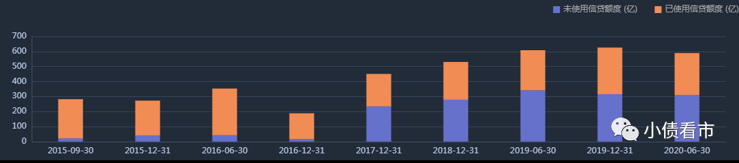 在備用資金方面,截至2020年6月末協(xié)信遠(yuǎn)創(chuàng)授信總額為589.29億元,未使用授信額度310.17億元,可以看出財務(wù)彈性尚可。